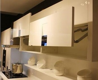 上翻折叠门的两个门板在打开时在中间部位折合起来,折叠系统被活动门板所掩盖,整个橱柜体可以毫无阻碍地打开。上翻折叠门适应更宽的柜体,柜体宽度范围为450-1800mm,这样的宽度平开门不再适应;柜体高度范围为480-1040mm,从而实现再较高吊柜上使用大幅面上翻门,并且使拉手的安装位置触手可及。